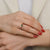 A baguette-cut royal ruby gemstone ring set horizontally with a pair of trillion-shaped Moissanite stones.Dainty design with perfect presence in combination with additional rings for an event or for everyday life. This jewelry is made to order - production time 5-8 business days. Made...- Regular price