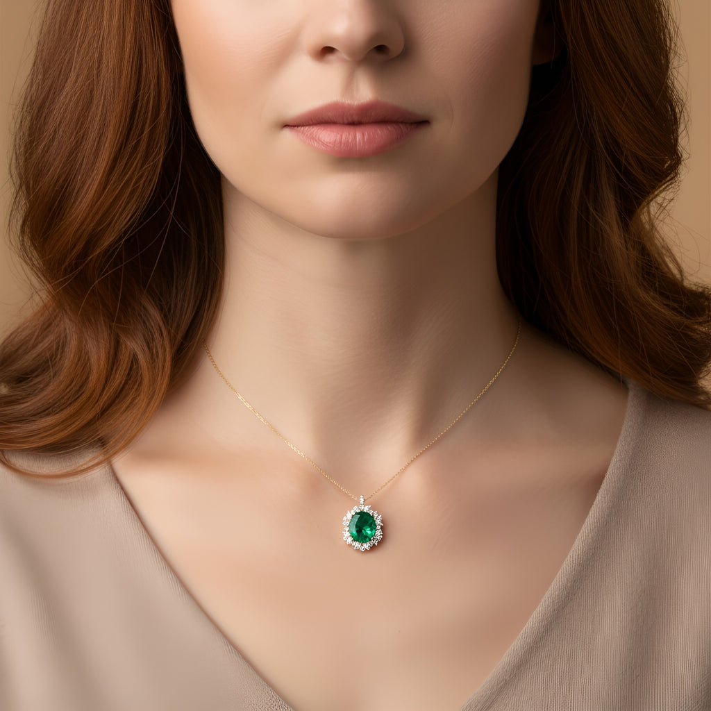 השילוב בין הזהב, הירוק המלכותי והניצוץ הלבן של היהלומים יוצר תליון מלא הדר, כזה שמושך מבטים אך שומר על אלגנטיות מושלמת.