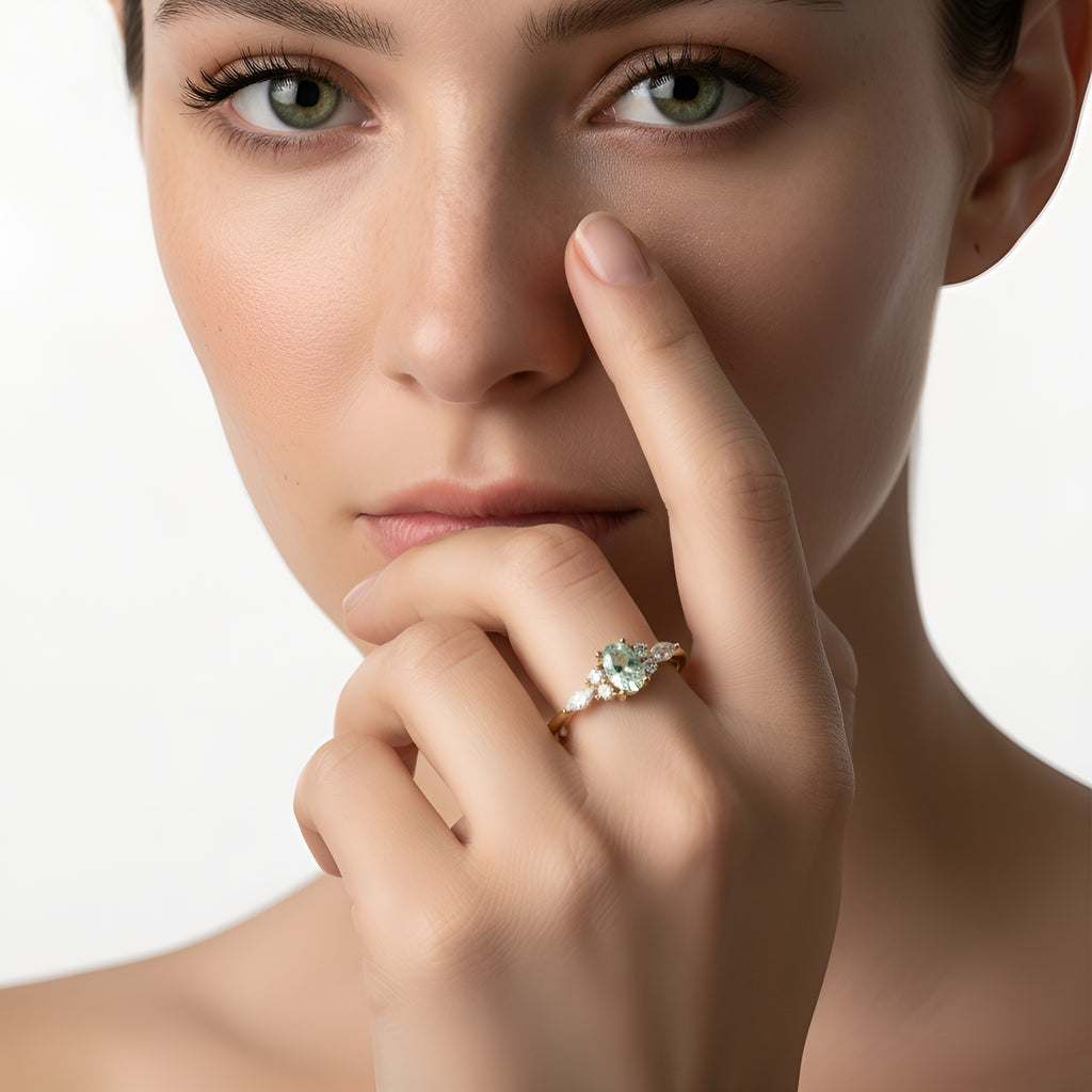 מיוצרת ברמת דיוק גבוה במיוחד ומשובצת באבן-חן אקוומארין ירוקה מהממת בשילוב יהלומים מלאי ברק.