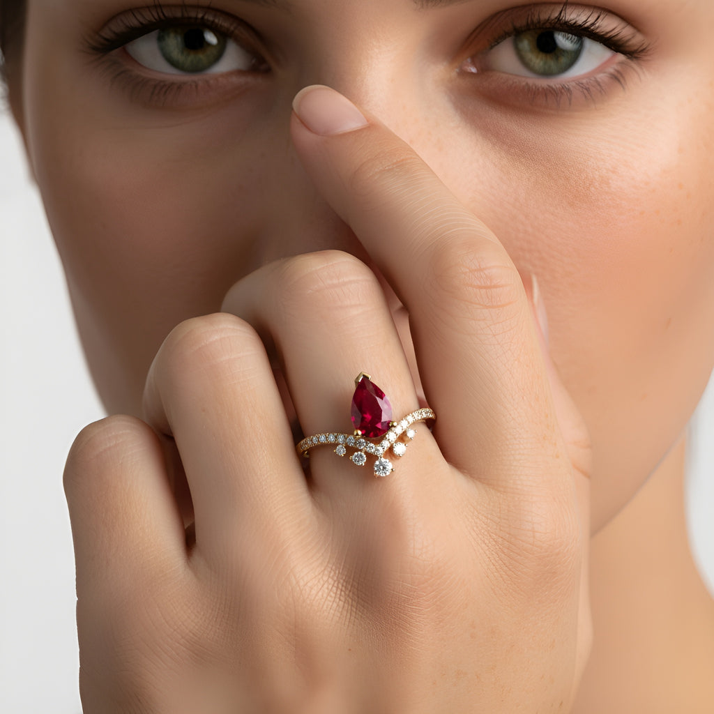 Set with ruby ​​corundum gemstone and super-finished diamonds.