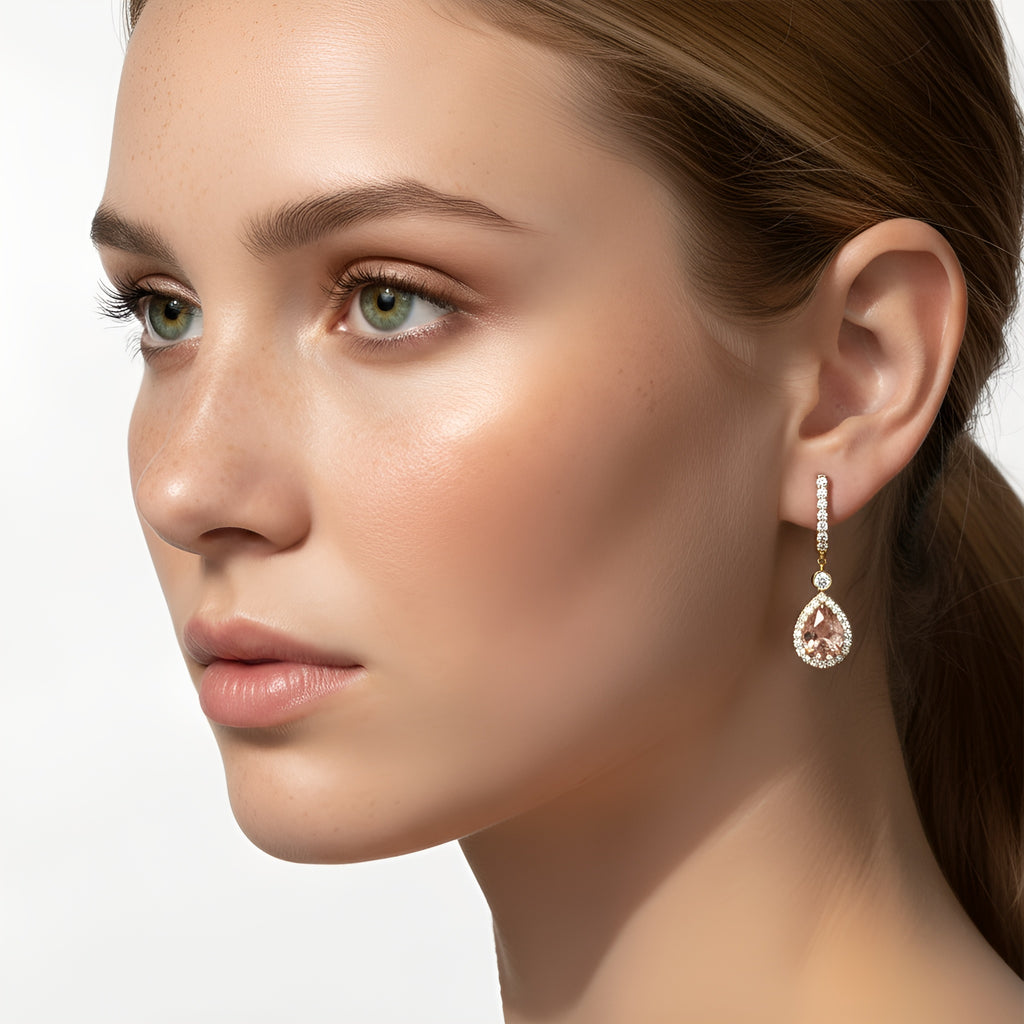 משובצים אבני-חן מורגנייט באיכות מעולה בעבודת-יד ברמה שלא הכרת בכסף מצופה רודיום 14 קרא.