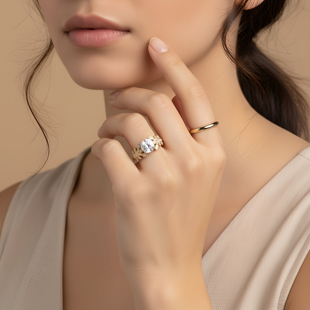טבעת בעיצוב אמנותי בהשראת הטבע, בעבודת יד מוקפדת, המשובצת ביהלומים ממעבדה (CVD Lab Grown Diamonds) במשקל כולל של כ־1.98 קראט.