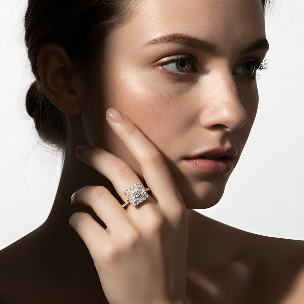 טבעת יוקרה משובצת 47 יהלומים טבעיים באיכות מעולה.