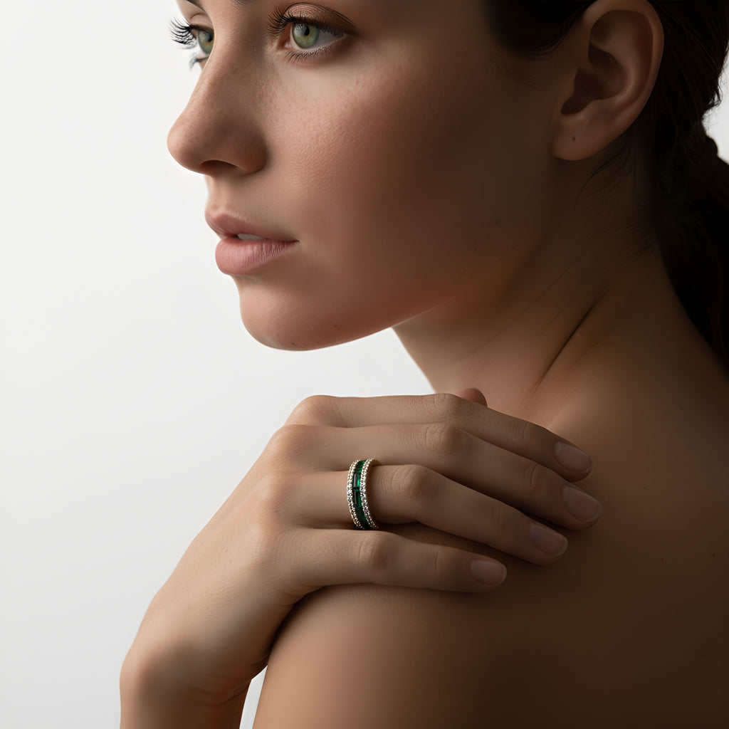 משובצת אבני-חן אמרלד ירוק ויהלומים בגימור-על.