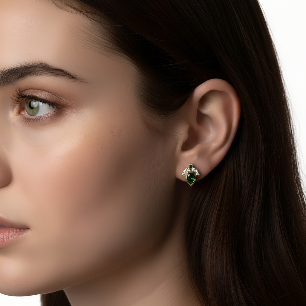 זוג עגילי זהב סופר אלגנטיים משובצים אבן-חן אמרלד צ'טהאם ירוקה עם עומק מהפנט בשילוב יהלומים.