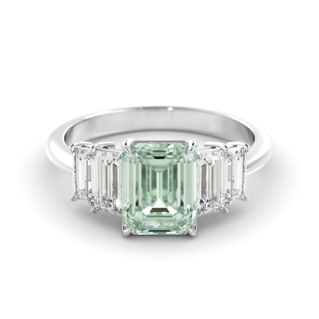 משני צדדיה משובצים ארבעה יהלומי מעבדה (Lab Grown Diamonds) מלוטשים בחיתוך baguette, המוסיפים סימטריה מדויקת ונצנוץ עדין של אור טהור.