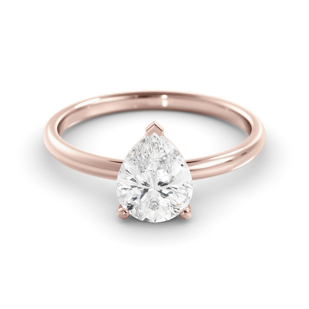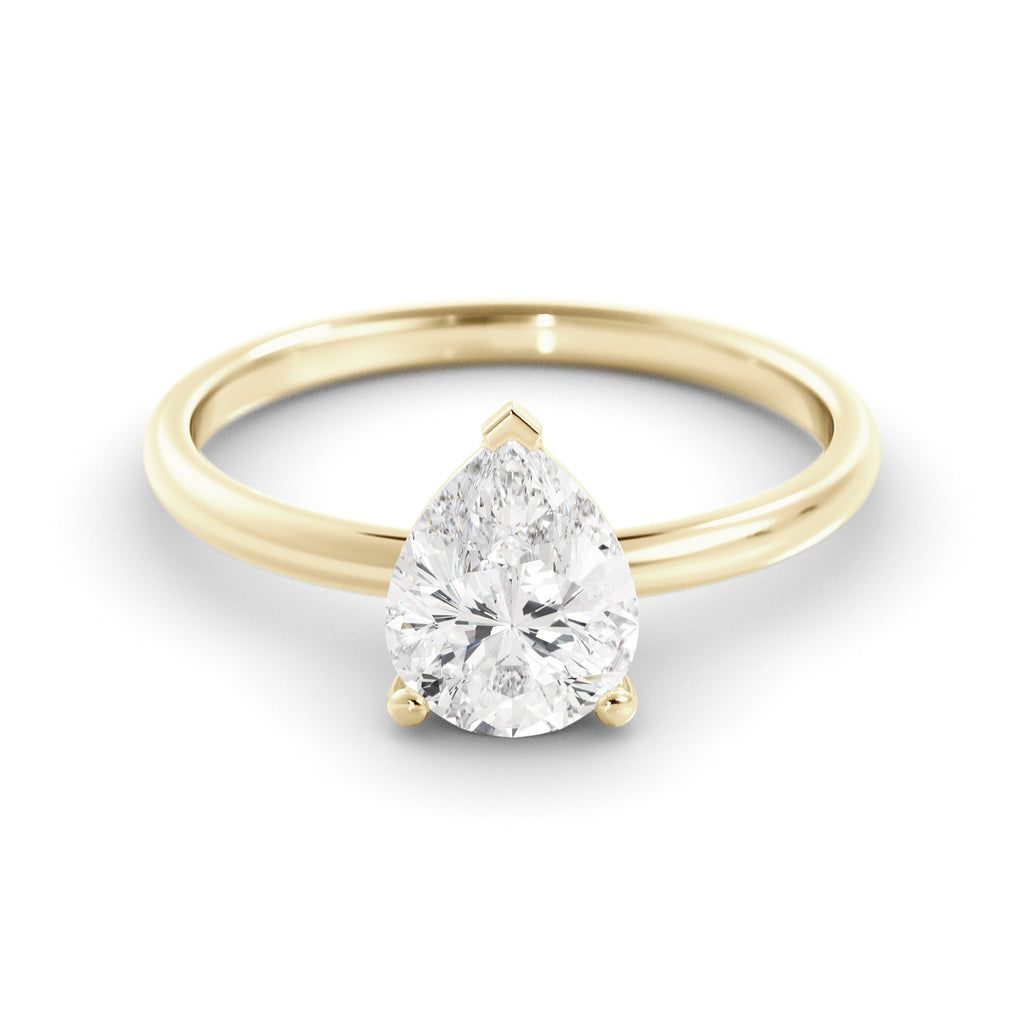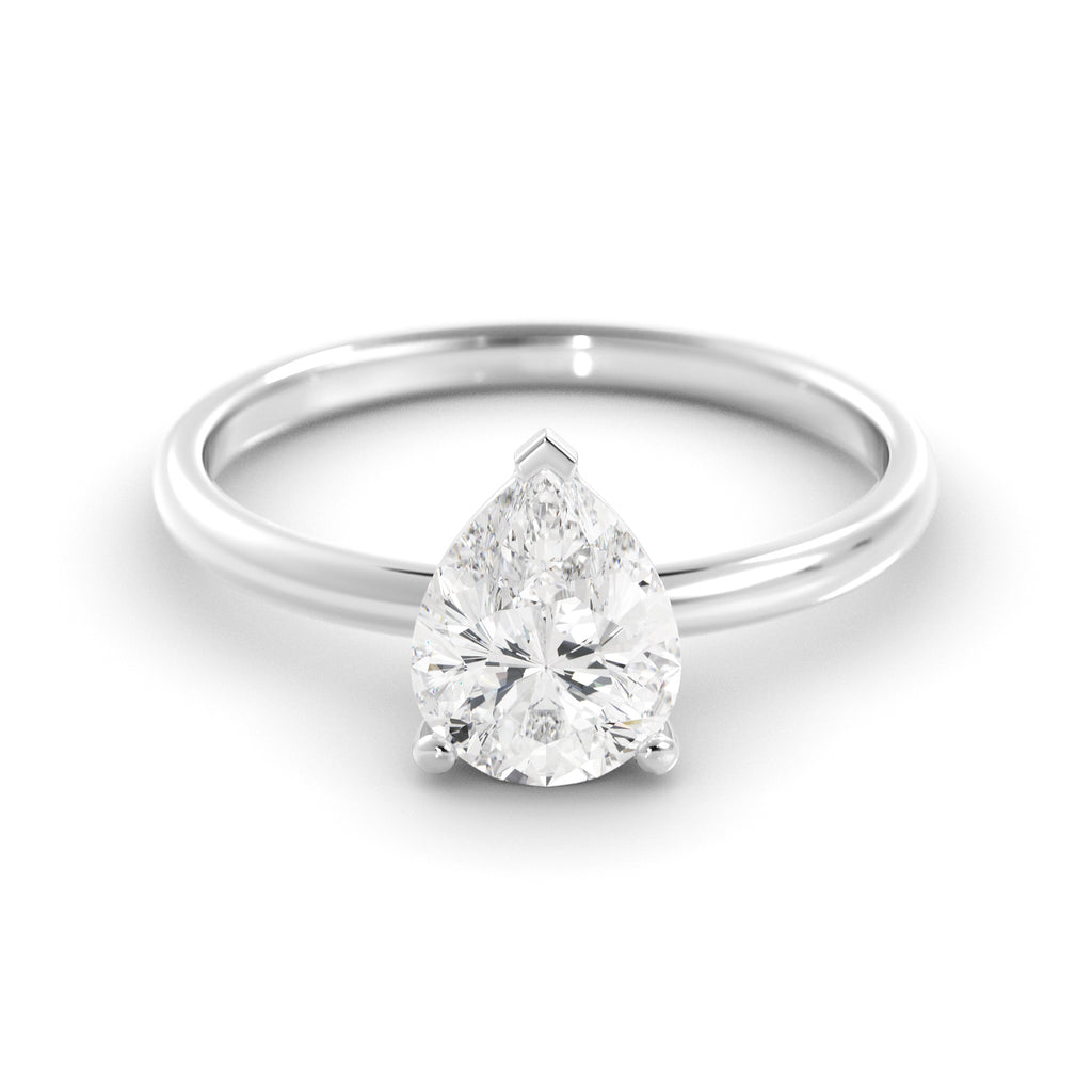 טבעת אירוסין קלאסית ונצחית בעיצוב סוליטר עדין, המשובצת ביהלום דמעה (Pear Cut) בגודל 9x7 מ״מ, במשקל מינימלי של 1.60 קראט מינימום, איכות VVS וניקיון מושלם.