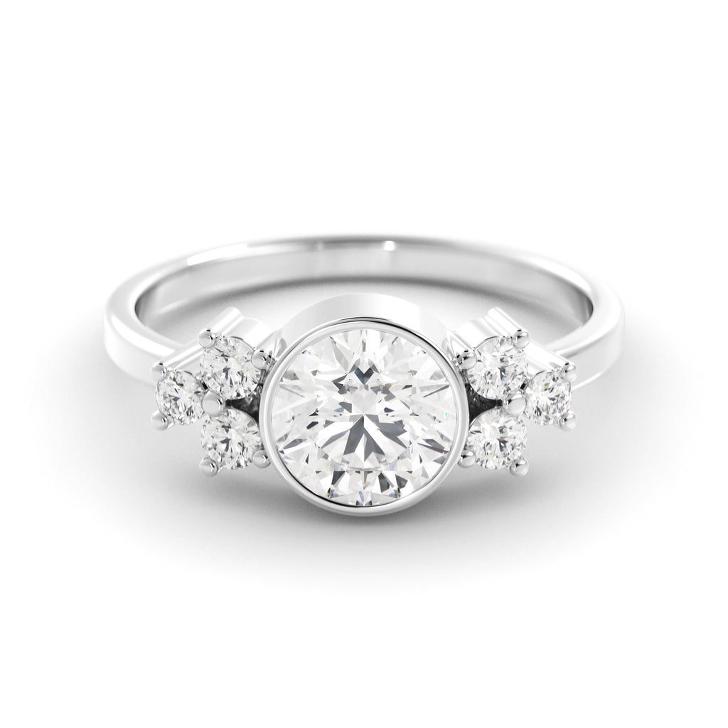 משני צדדיו, שישה יהלומים קטנים נוצצים משלימים את העיצוב ומוסיפים איזון והרמוניה עדינה.