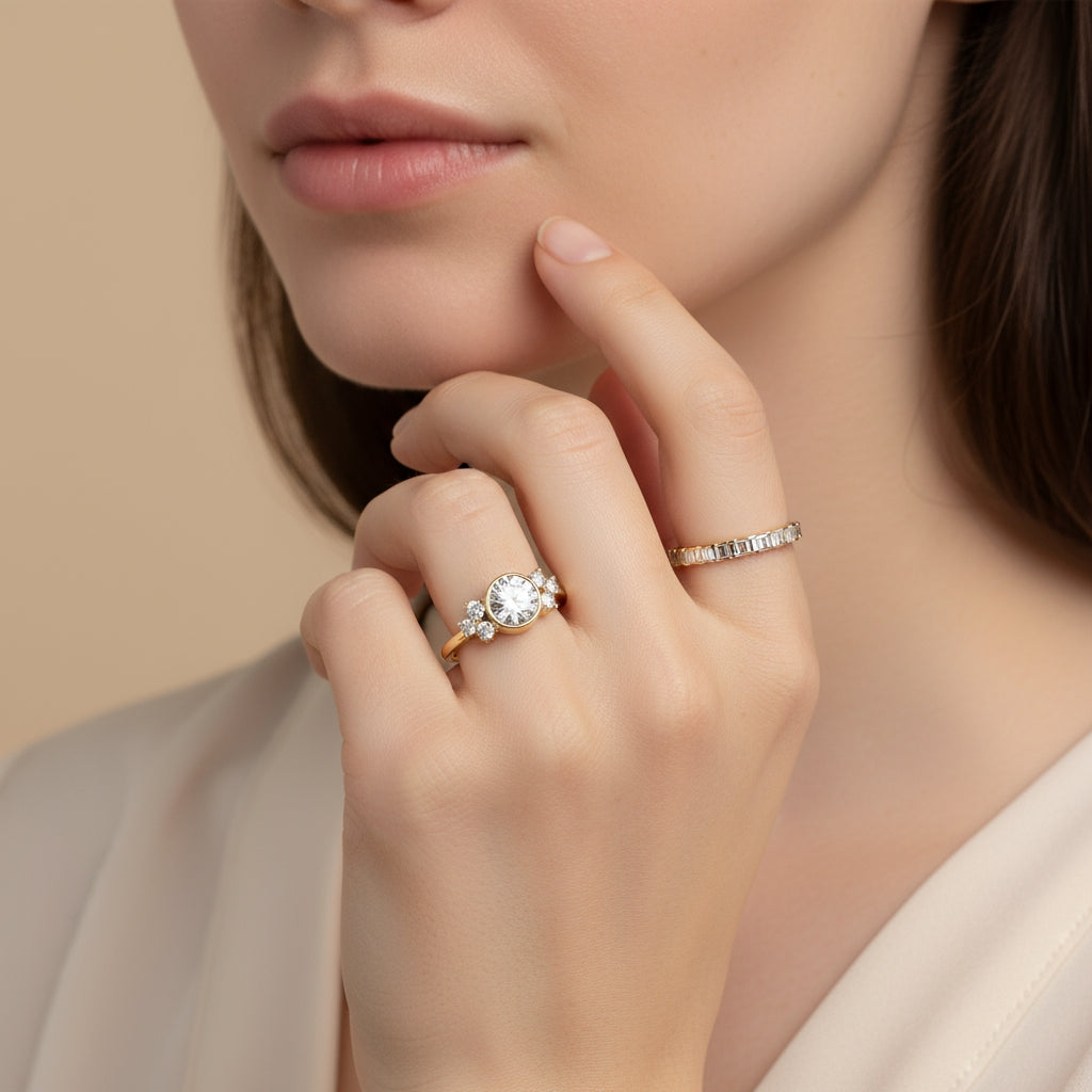 טבעת משלבת אלגנטיות מודרנית עם נצנוץ קלאסי נצחי.