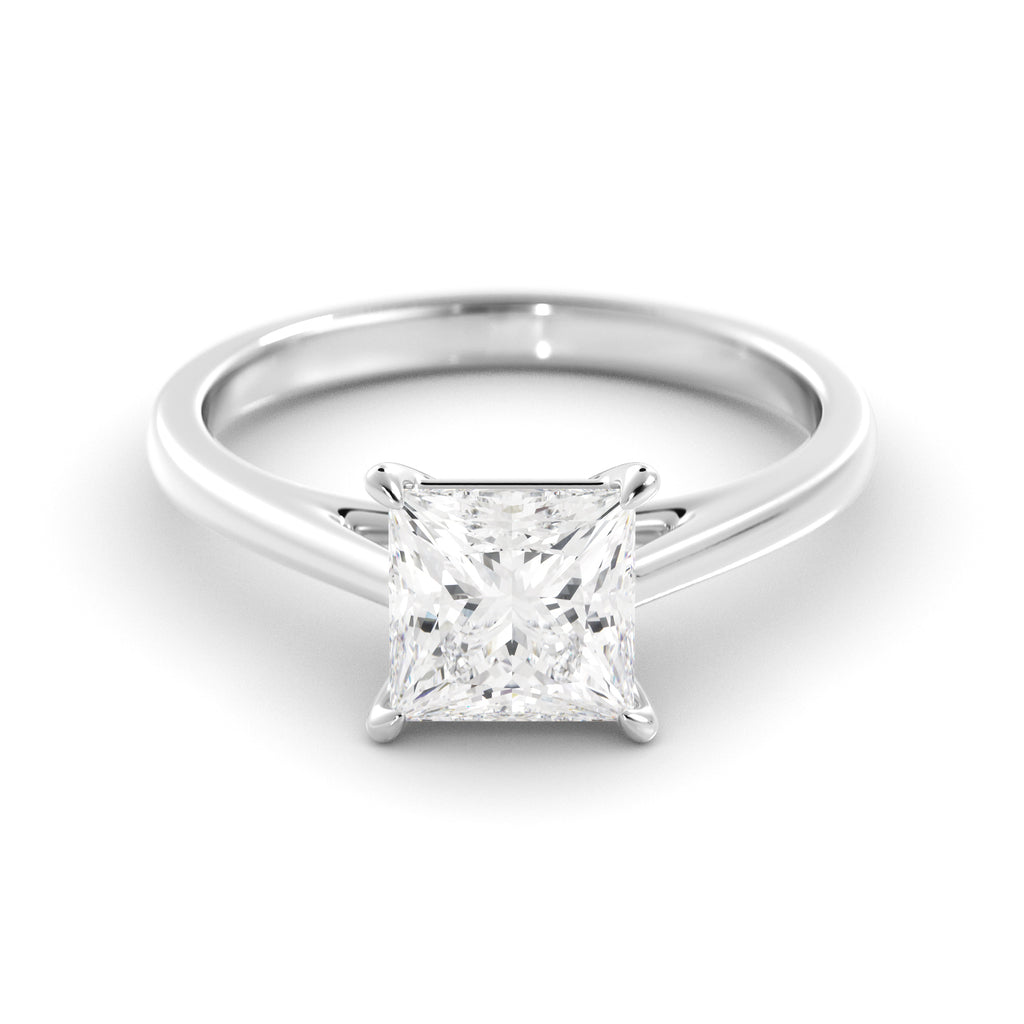 טבעת אירוסין יוקרתית בעבודת יד, משובצת ביהלום מעבדה (CVD Lab Grown Diamond) בחיתוך פרינסס (Princess Cut) בגודל 7x7 מ"מ ובמשקל מרשים של 2 קראט(בקירוב)