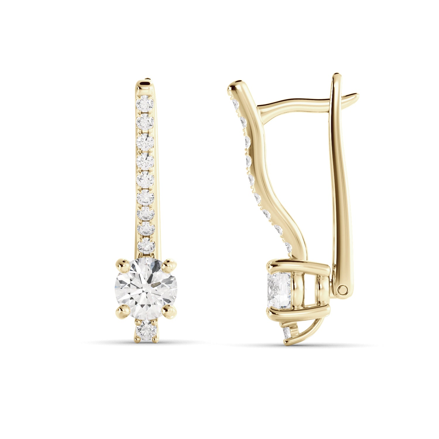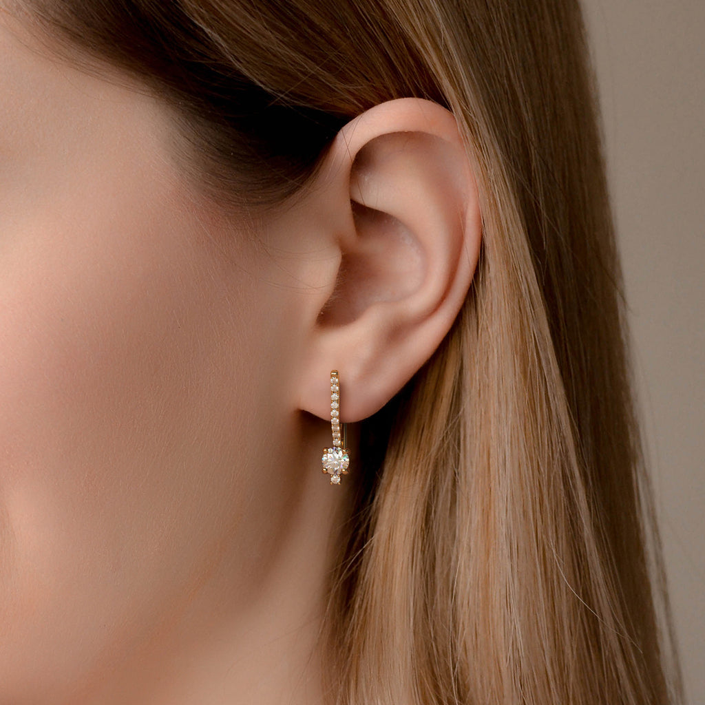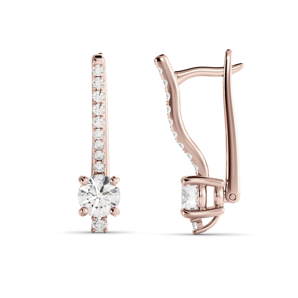 עגילי יוקרה מזהב משובצים יהלומי – שילוב מושלם של אלגנטיות ונוכחות. העגילים עשויים זהב 14K בעיצוב קלאסי ומעודן, משובצים זוג יהלומי מעבדה מהממים ומרהיב. מסביב לאבן המרכזית ובחלק הקדמי של העגיל משובצים יהלומים נוספים קטנים ונוצצים, המוסיפים ברק ייחודי ויוקרה בלתי מתפשרת.