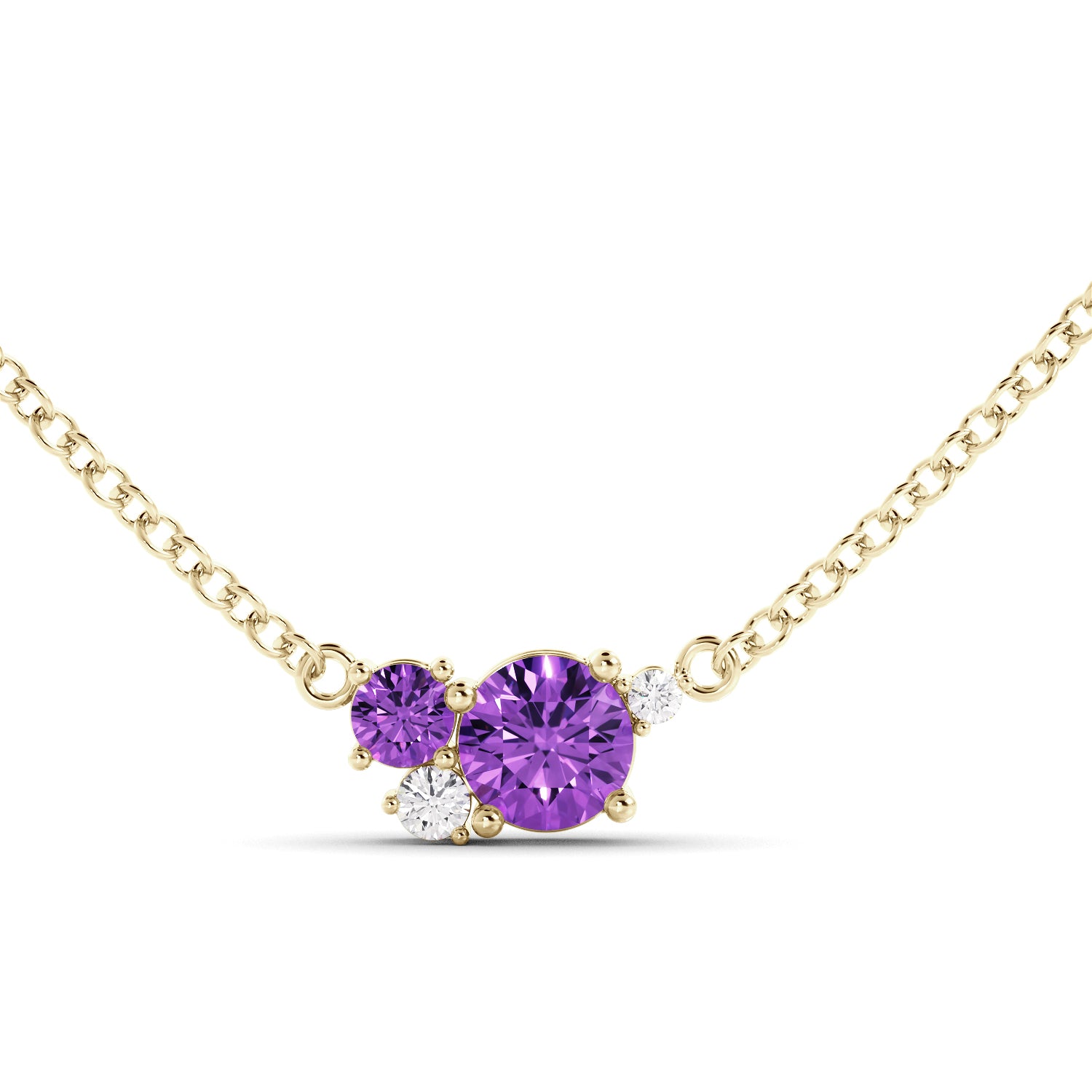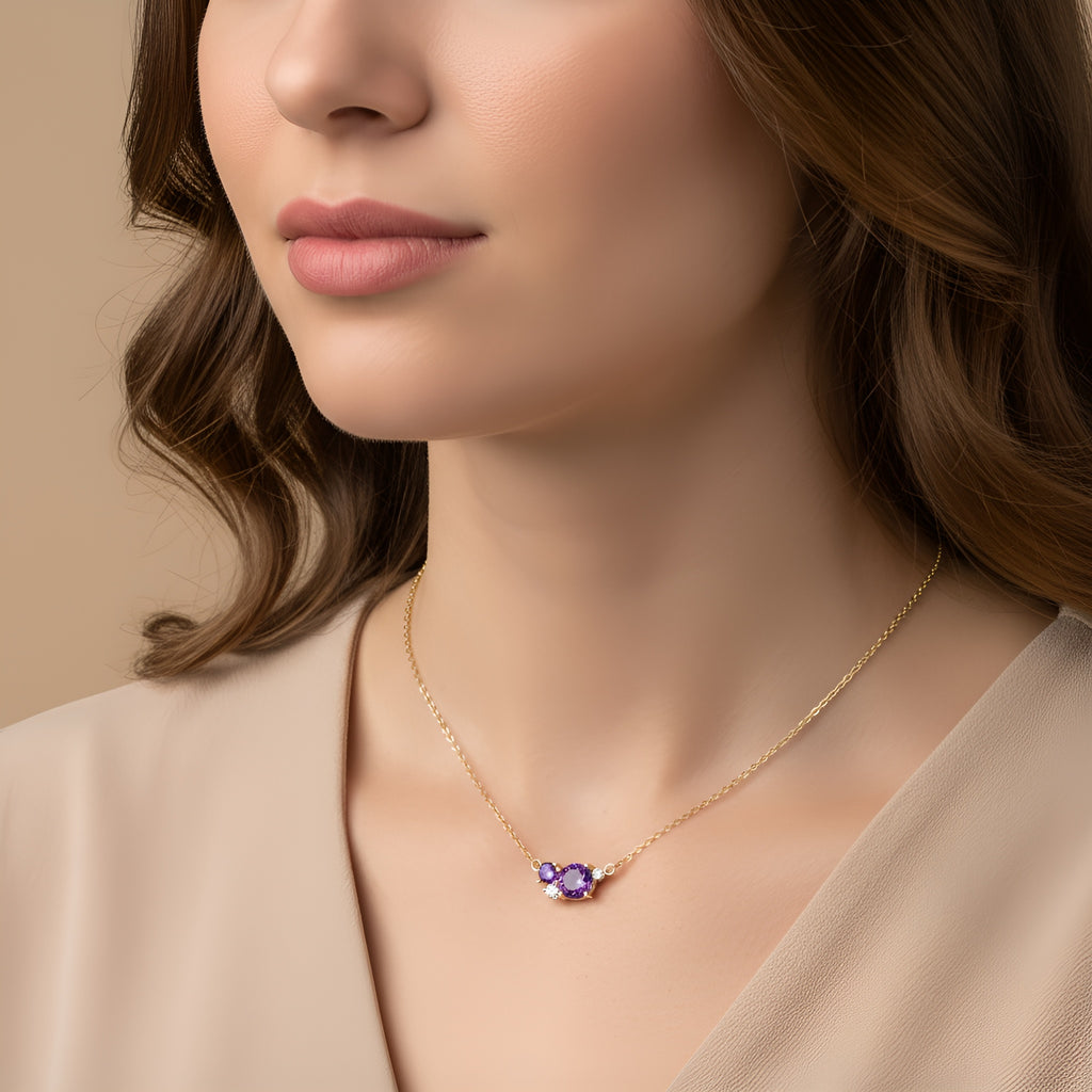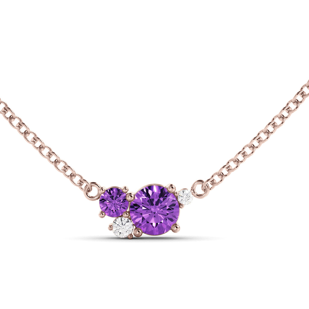 שרשרת עדינה בעיצוב מודרני המשובצת באמטיסט טבעי סגול וביהלומים נוצצים במיוחד.