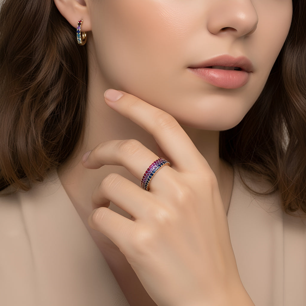 ביחד הם יוצרים טבעת עשירה בצבע ובמשמעות, המתאימה לנשים שאוהבות להביע את עצמן באומץ ובחן.
