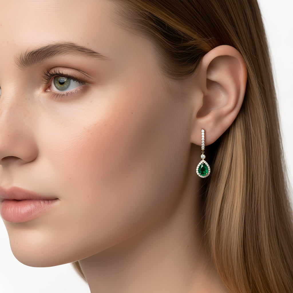 משובצים אבני-חן אמרלד באיכות מעולה בעבודת-יד ברמה שלא הכרת בזהב 14 קראט.